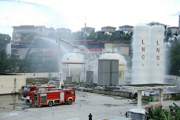 為進(jìn)一步加強(qiáng)安全生產(chǎn)應(yīng)急管理工作,提高燃?xì)庑孤┩话l(fā)事故的應(yīng)急處置能力,檢驗(yàn)罐區(qū)消防設(shè)施的有效性,最大限度地減少燃?xì)庑孤┦鹿始捌湓斐傻娜藛T傷亡和財(cái)產(chǎn)損失, 2015年12月10日下午四時(shí)許,曠遠(yuǎn)能源聯(lián)合莆田市住建局、市公安局、市質(zhì)監(jiān)局、市消防支隊(duì)、霞林派出所、莆田電視臺(tái)等單位,在城廂氣化混氣灌瓶站共同組織開展“液化石油氣泄漏事故應(yīng)急演練”。曠遠(yuǎn)能源總經(jīng)理葉春、副總經(jīng)理黃劍鋒、副總經(jīng)理胡惠、總助陳麗群、總助施偉江及相關(guān)部門主管均到達(dá)現(xiàn)場(chǎng)全程參與演練,全市11家燃?xì)馄髽I(yè)代表獲邀至現(xiàn)場(chǎng)觀摩。