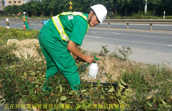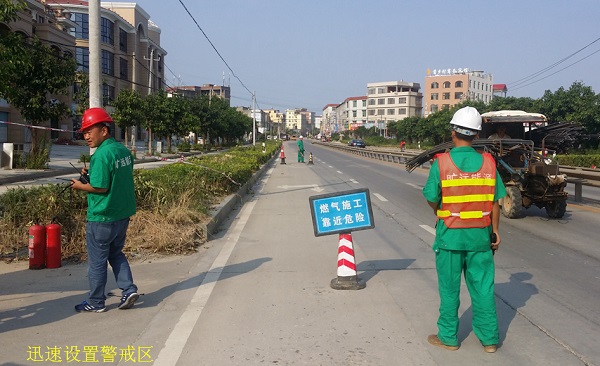 本次演練項(xiàng)目為:天然氣管道被第三方施工單位挖破后大量泄漏的應(yīng)急處置。主要流程為:模擬事故發(fā)生、報(bào)警、應(yīng)急啟動、人員疏散、安全警戒及交通管制、關(guān)閉上下游管道閥門、驅(qū)散泄漏燃?xì)?、破損管道搶修、解除警戒、恢復(fù)供氣等。在演練過程中,所有參演人員嚴(yán)肅認(rèn)真、節(jié)奏緊湊而又有條不紊地進(jìn)行各個(gè)演練步驟,歷時(shí)近50分鐘后,演練圓滿完成。