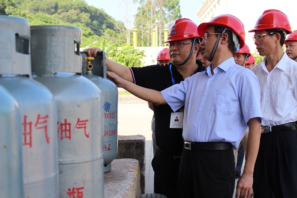 為扎實做好燃氣安全生產(chǎn)工作,確保全市人民的用氣安全和需求,杜絕各類安全事故的發(fā)生,2017年7月26日上午,莆田城廂區(qū)區(qū)長吳文恩、副區(qū)長施清芳攜城廂區(qū)府辦、區(qū)安監(jiān)局、經(jīng)信局、住建局、交警大隊、消防大隊、市質(zhì)監(jiān)局等部門主要領(lǐng)導,在曠遠能源副董事長兼總裁姜升科等的陪同下,對曠遠能源氣源廠開展安全生產(chǎn)檢查指導工作。 吳文恩區(qū)長等領(lǐng)導一行深入氣源廠生產(chǎn)區(qū),詳細了解LNG裝卸及氣化工藝、LPG..